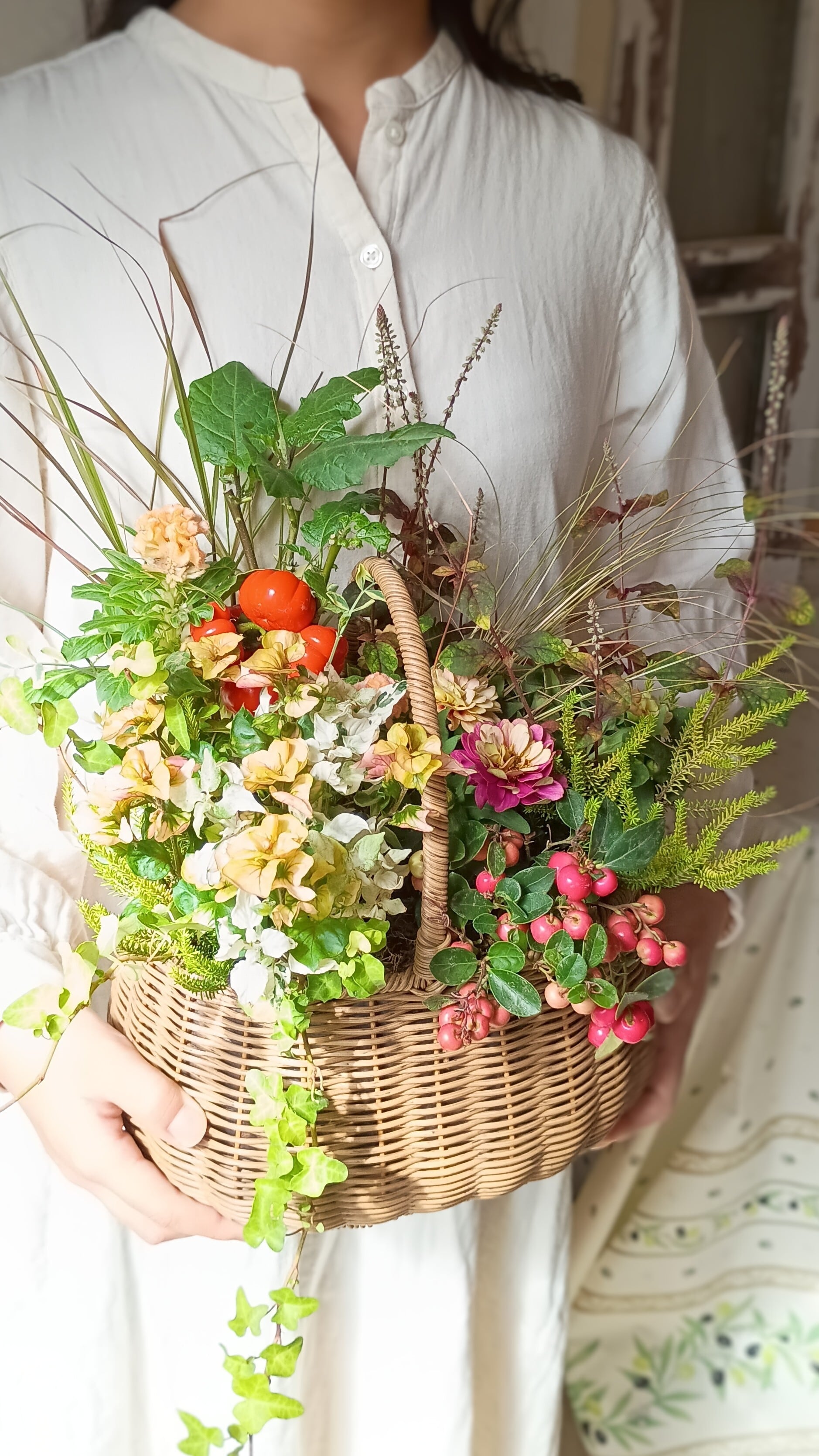 かわいい籠は再生プラスチック製で丈夫で長く使用していただけます。
