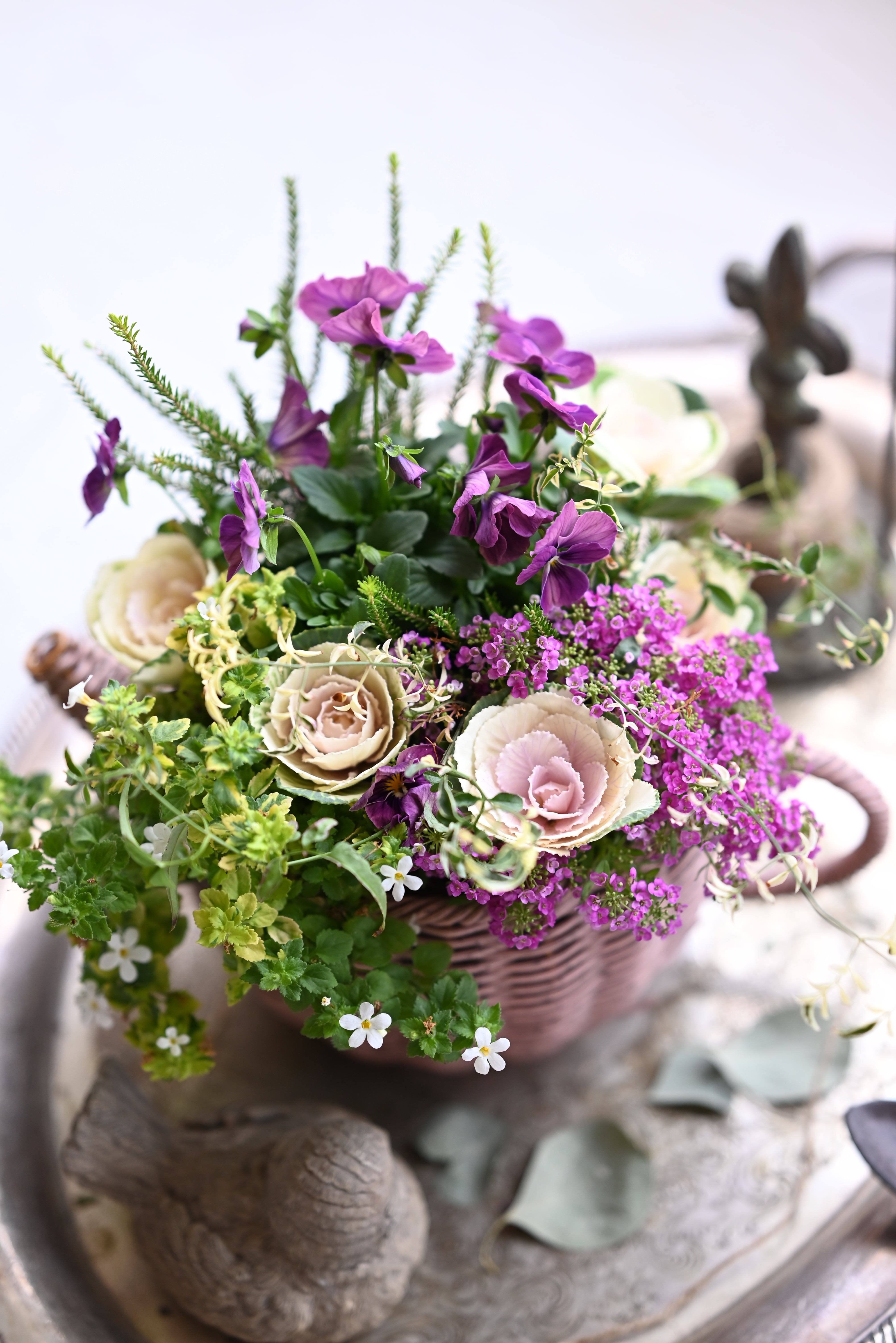 【SALE】アンティークピンクのビオラとハボタンのポット寄せ植え